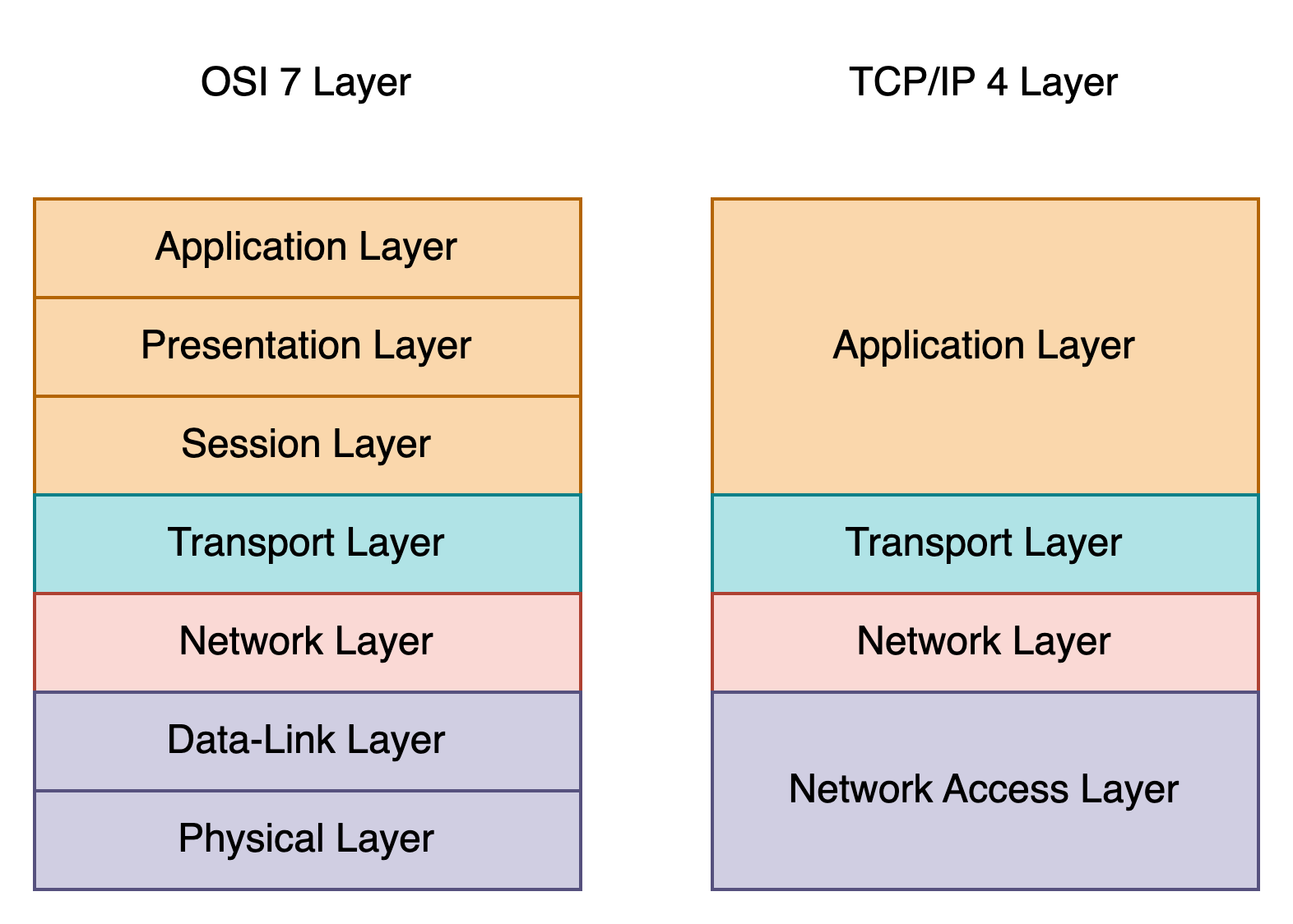 TCP/IP 4계층 TCP(Transmissino Control Protocol)/ IP(Internet Protocol) 4계층이란 장치들(node)이 인터넷 상에서 데이터를 주고 받을 때 쓰는 독립적인 프로토콜의 집합을 의미한다. 인터넷을 통해 데이터를 주고 받을 때 주로 TCP와 IP를 이용하여 보내기 때문에 사용되는 용어이다. TCP/IP 4계층의 구성은 아래와 같다. 1. 애플리케이션 계층(application) 웹 서비스, 이메일 등 실질적으로 사용자에게 서비스를 제공하는 계층으로, 대표적인 애플리케이션 계층으로는 HTTP, SMTP, SSH, FTP가 있다. 2. 전송 계층(transport) 애플리케이션 계층에서 받은 메시지를 기반으로 세그먼트 또는 데이터그램으로 데이터를 쪼개어, 데이터가..